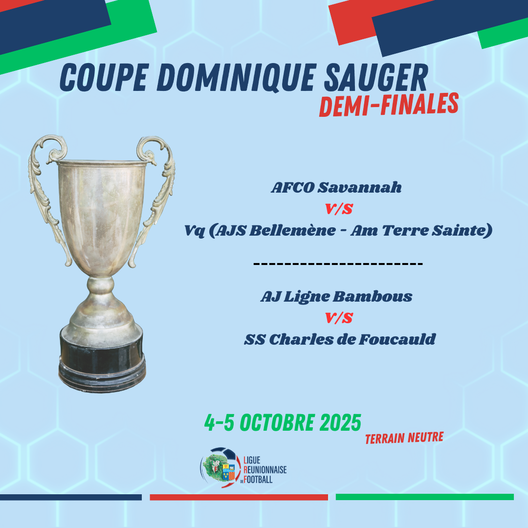 Ce mercredi 17 septembre, la Ligue Réunionnaise de Football, sous l’égide de la Régionale Sportive, a procédé au tirage au sort des demi-finales de la Coupe Dominique Sauger. Les rencontres...