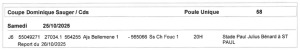 Samedi 25 octobre à 20h, la Coupe Dominique Sauger (réservée aux clubs de R3) connaîtra son dénouement. Une finale 100 % saint-pauloise opposera l’AJS Bellemène, 6e de la poule C, à la SS Charles de Foucauld, 2e de la poule B.
