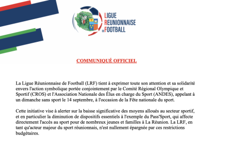 En réponse à l’appel du CROS et de l’ANDES pour un dimanche sans sport le 14 septembre, la Ligue Réunionnaise de Football apporte son soutien tout en rappelant les contraintes spécifiques auxquelles elle est confrontée sur le territoire.